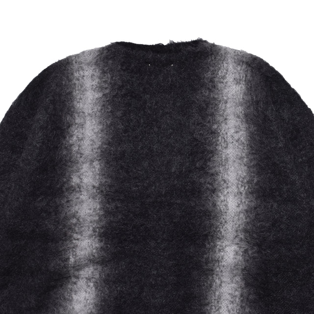 キッドモヘアとウールの混紡糸を用い、ヴィンテージのシャツからインスピレーションを受けた大胆なストライプ柄をジャガード編みで表現。