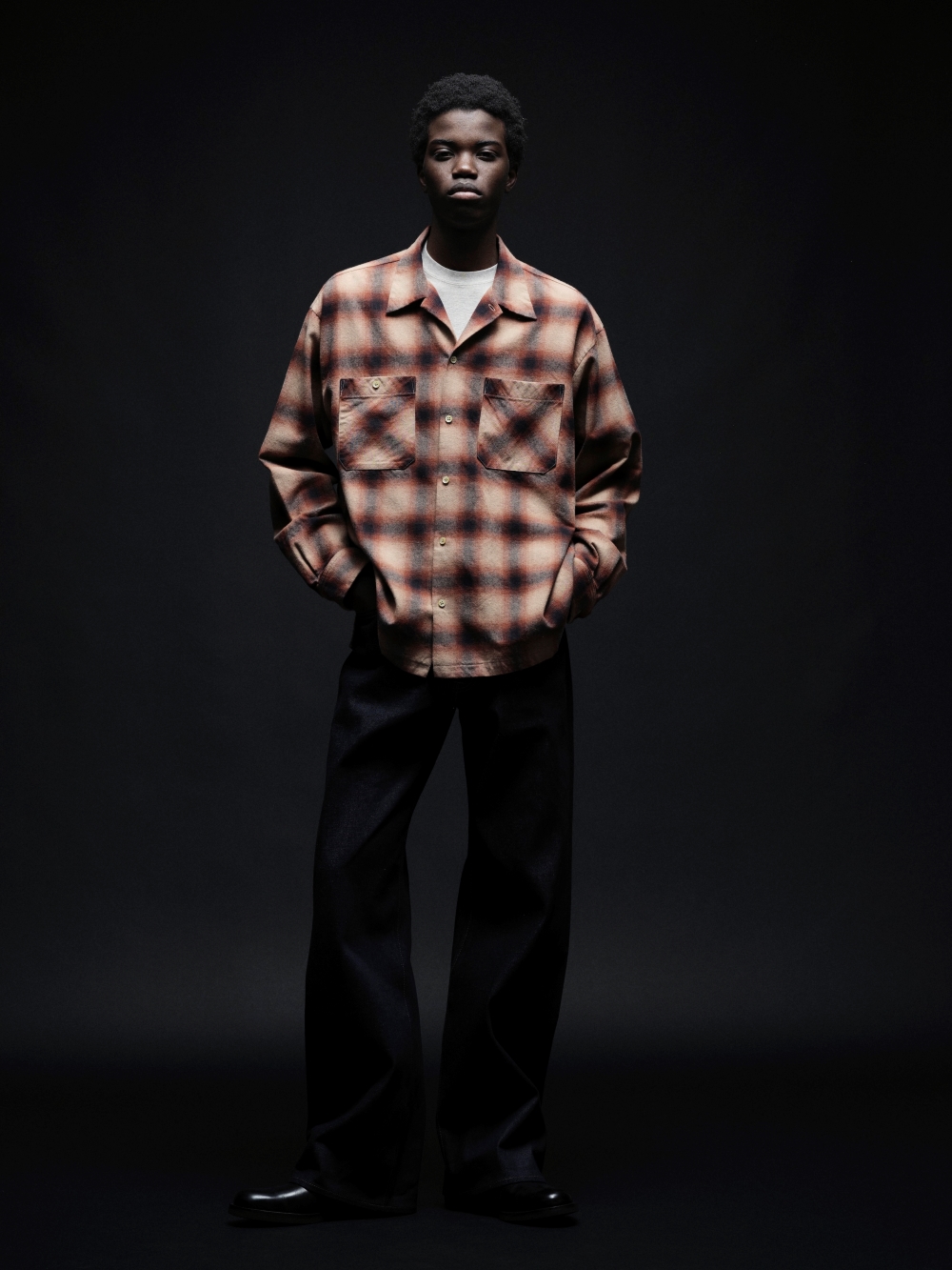 細部にまでこだわった柄合わせがクオリティの高さを感じさせるゆったりとしたボックスシルエットのオープンカラーシャツ。