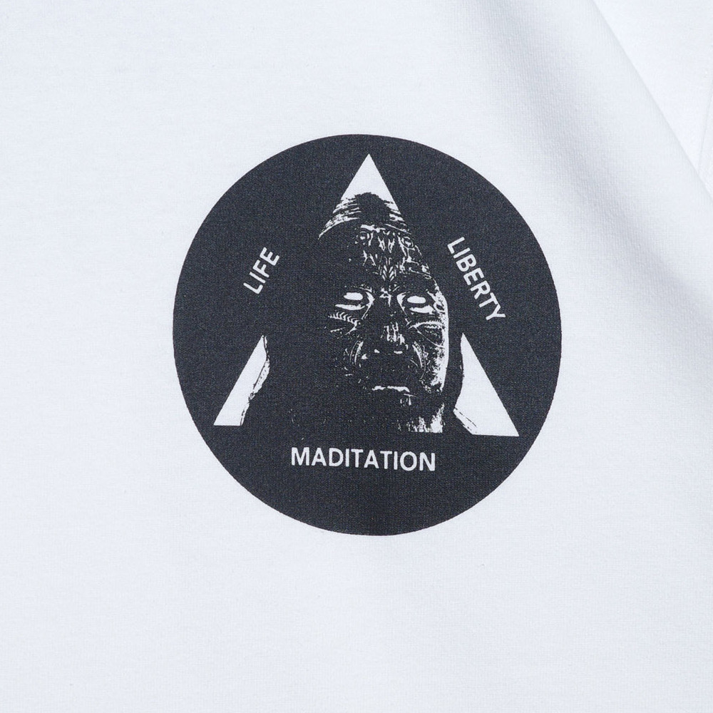 Black weirdos(ブラック ウィドー)のとNISHIMOTO IS THE MOUTH (ニシモトイズザマウス)がコラボレートしたTシャツです。オープンエンド糸を採用した8オンスのオリジナルコットン生地で製作したグラフィックTeeで、洗うほど着心地を増していくテキスタイル。フロントに施されたインパクトのあるグラフィックが魅力的。一枚着としてはもちろん、ジャケットやカーディガンのインナーとして、スタイリングのアクセントにおすすめです。