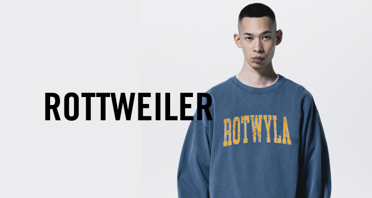タレント、雑誌、広告、CDのジャケットなど幅広く活躍する人気スタイリストの宮島尊弘が、2005年に設立したブランド。サーフ、バイク、アメカジ、ロックなどさまざまなスタイルをミックスした不良っぽいテイストにROTTWEILERらしいスマートな雰囲気を加えたテイストのブランド。スタイリストの観点からデイリーに着こなせるリアルクローズを展開。